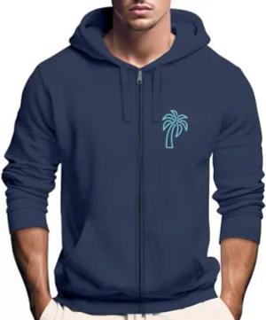 Sweatjacke mit Kapuze Herren Print Palme Line Art Motiv Hoodie-Zipjacke Männer Fashion Streetstyle Navy weiß XS