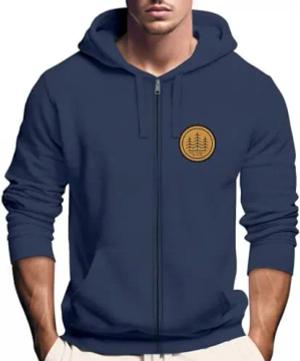 Hoodie Herren Wald Bäume Logo Badge Naturliebhaber Outdoor Fashion Streetstyle Navy 3XL