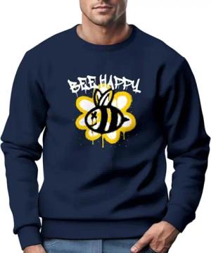 Sweatshirt Aufdruck Bee Happy Biene Blume Graffiti Grafik Schriftzug Rundhals-Pullover Fashion Streetstyle Navy XL