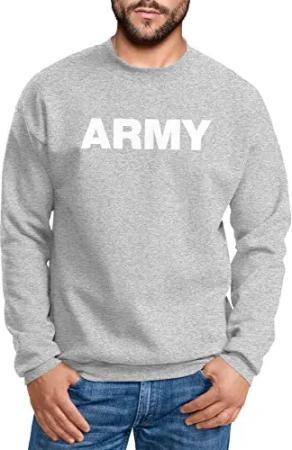 Sweatshirt Herren Aufdruck Army Print Rundhals-Pullover grau/weiß XS
