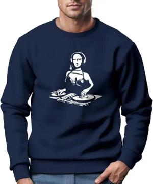Sweatshirt Herren Bedruckt Mona Lisa Techno Festival DJ Electronic Music Rave Fashion Streetstyle Navy XL