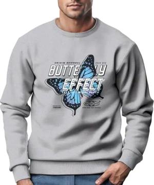 Sweatshirt Herren Bedruckt Schmetterling Butterfly Effekt Techwear Grafik Rundhals-Pullover Fashion Streetwear grau S