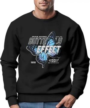 Sweatshirt Herren Bedruckt Schmetterling Butterfly Effekt Techwear Grafik Rundhals-Pullover Fashion Streetwear schwarz M
