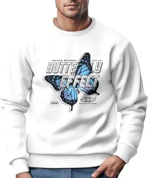 Sweatshirt Herren Bedruckt Schmetterling Butterfly Effekt Techwear Grafik Rundhals-Pullover Fashion Streetwear weiß M