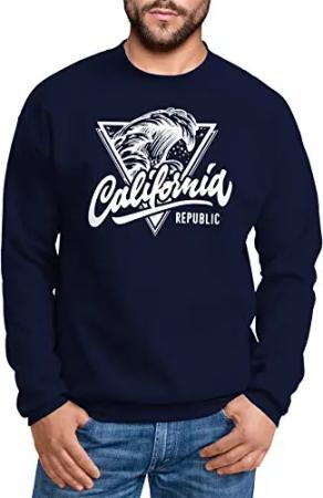 Sweatshirt Herren California Republic Surfer Print Welle Wave Surf Rundhals-Pullover Navy 4XL