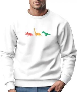 Sweatshirt Herren Dinosaurier Aufdruck Polygon Tiere Geometric Print Fashion Streetstyle Rundhals-Pullover weiß 4XL