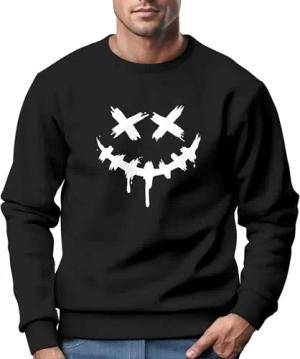 Sweatshirt Herren Drip Face Techwear Fashion Streetstyle Smiling Face Smile Trend Rundhals-Pullover Fashion schwarz S