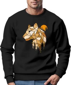 Sweatshirt Herren Fashion Polygon Print Luchs Wald Tiere Outdoor Motiv Rundhals-Pullover Fashion Streetwear schwarz 3XL