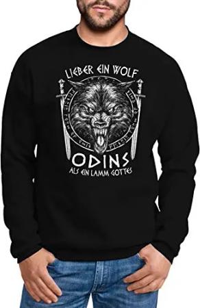 Sweatshirt Herren Lieber EIN Wolf Odins als EIN Lamm Gottes nordische Mythologie Wikinger Rundhals-Pullover schwarz S