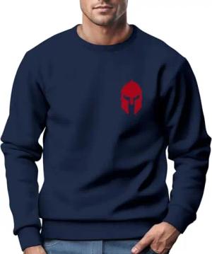 Sweatshirt Herren Logo Print Sparta-Helm Spartaner Gladiator Krieger Warrior Rundhals-Pullover Fashion Streetwear Navy-rot XS