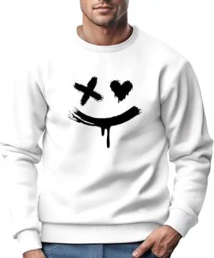Sweatshirt Herren mit Aufdruck Motiv Smile Print Rundhals-Pullover Fashion Streetwear weiß XL