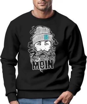 Sweatshirt Herren Moin Kapitän Bart Anker Nordisch Hamburg Rundhals-Pullover Fashion Streetwear schwarz XL