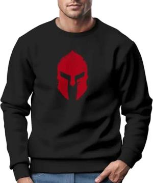 Sweatshirt Herren Print Sparta-Helm Spartaner Gladiator Krieger Warrior Rundhals-Pullover Bedruckt Fashion Streetwear schwarz/rot XXL