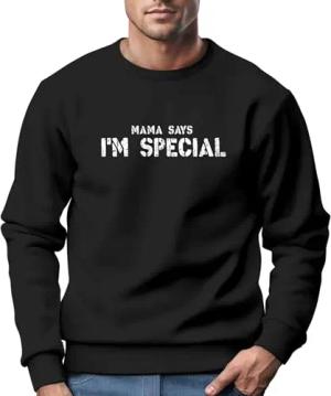 Sweatshirt Herren Shirt Spruch lustig Mama Says I Am Special Ironie Sarkasmus Aufdruck Nerd Rundhals-Pullover schwarz XS