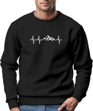Sweatshirt Herren Wandern Berge Herzschlag Outdoor Rundhals-Pullover Fashion Streetwear schwarz L