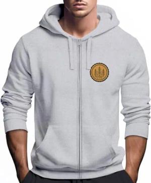 Zip Hoodie Herren Outdoor Motiv Bäume Sweatjacke mit Kapuze Logoprint Fashion Streetstyle grau-Melange S