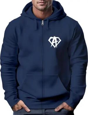 Zip Hoodie Herren Sweatjacke mit Kapuze Alpha Logo Print Aufdruck Motiv Männer Fashion Streetstyle Navy 4XL
