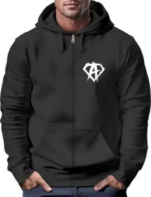 Zip Hoodie Herren Sweatjacke mit Kapuze Alpha Logo Print Aufdruck Motiv Männer Fashion Streetstyle schwarz 4XL
