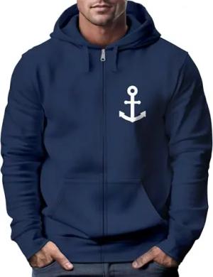 Herren Sweatjacke mit Kapuze Zip-Hoodie Motiv Anker Meer Boot Männer Fashion Streetstyle Navy XXL
