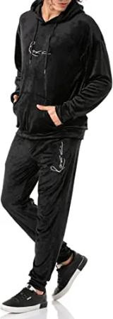 Herren Jogginganzug Set Velour Signature Kapuzenpullover und Hose Schwarz XL