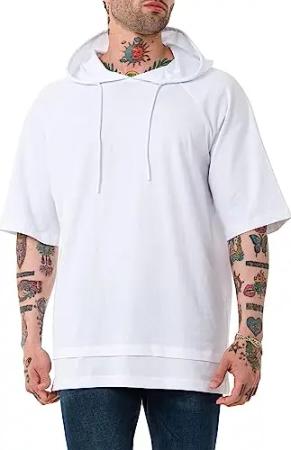 Herren T-Shirt Double Layer Oversized mit Kapuze Baumwolle Weiß L