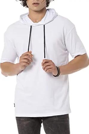 Hooded Tshirt Kurzarm mit Kapuze Baumwolle Premium Qualität Weiß M