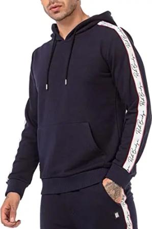 Kapuzenpullover mit Streifen Hoodie Sweatshirt dunkelblau Gr L