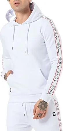 Kapuzenpullover mit Streifen Hoodie Sweatshirt Weiß Gr L
