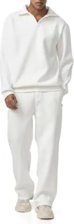 Lässiges Sweat-Set mit Polokragen – Bequemer Zweiteiler im Oversized-Look Weiß XL