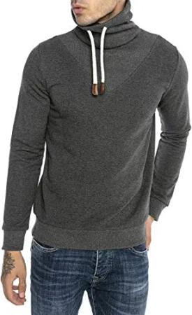 Pullover für Herren Sweater Hoher Krangen Schalkragen Pullover Grau M