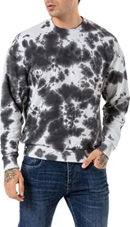 Sweatshirt Herren Rundhals Pullover Batik Schwarz XXL