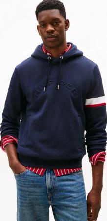 Hoodie "TOMMY LOGO TIPPED HOODY", Tommy-Tape innen am Ausschnitt, Flag-Stickerei am Ärmel