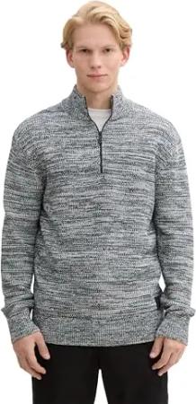 Herren Basic Troyer Strick-Pullover,36241 - Navy White Mouline, S