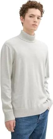 Herren Basic Rollkragenpullover aus Baumwolle, 15398 - Light Stone Grey Melange, XXL