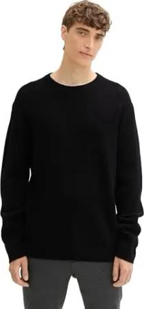 Herren Langer Pullover mit Struktur 1020413, 29999 - Black, S