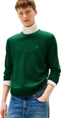 Herren Pullover Essential Cotton mit Rundhalsausschnitt, Grün (Ornamental Green Heather), XXL