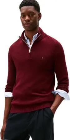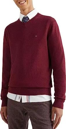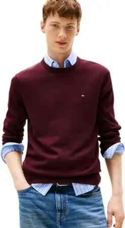 Herren Pullover Essential Cotton mit Rundhalsausschnitt, Mehrfarbig (Deep Burgundy/Petrol Blue Htr), XXL