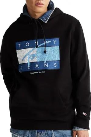 Herren Sweatshirt Tommy Logo ohne Kapuze, Schwarz (Black), XL