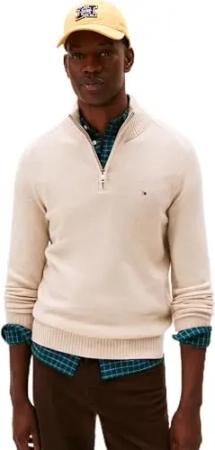 Herren Pullover mit Reißverschluss Essential Cotton Mock Halbzip, Elfenbein (Ivory Petal), L