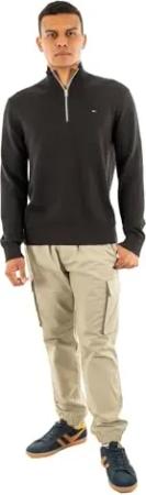 Herren Pullover mit Reißverschluss Light mit Stehkragen, Schwarz (Black), XS