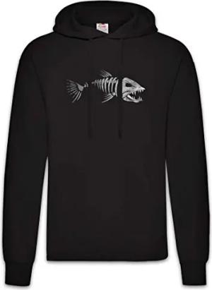 Fish Skeleton Hoodie Kapuzenpullover Sweatshirt Schwarz Größe M
