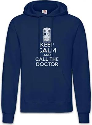 Keep Calm and Call The Doctor Hoodie Kapuzenpullover Sweatshirt Blau Größe M