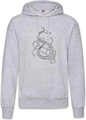 Norse Snake Dragon Hoodie Kapuzenpullover Sweatshirt Grau Größe 2XL