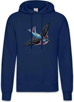 Oldschool Tattoo Swallow Hoodie Kapuzenpullover Sweatshirt Blau Größe XL