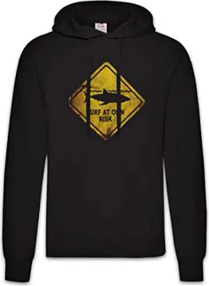 Shark Warning Sign Hoodie Kapuzenpullover Sweatshirt Schwarz Größe M