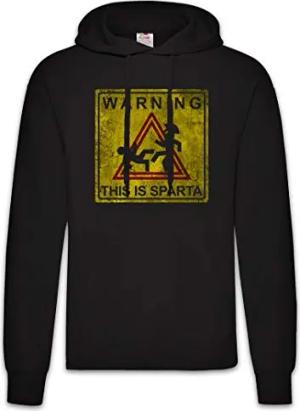 Warning This is Sparta Sign Hoodie Kapuzenpullover Sweatshirt Schwarz Größe M