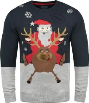 Blend BHRudolph Herren Weihnachtspullover Winter Pullover Strickpullover Weihnachtspulli mit Rundhals-Ausschnitt Regular fit, Größe:S, Farbe:Dark Navy/Santa (74676)