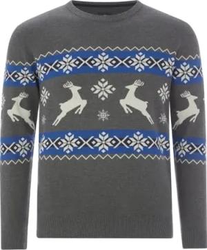 Herren Strickpullover Norweger Pullover Slim-Fit Plait Reindeer Navyblau XL