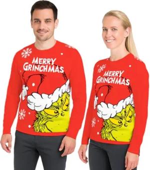 Der Grinch Weihnachtspullover für Herren und Damen, Rot, Merry Grinchmas, XL, Winter Strickpullover, Pullover Unisex