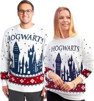 Harry Potter Hogwarts Weihnachtspullover, Merch für Damen und Herren, Weiß, Sweatshirt in Größe XXL, 100% Polyacryl